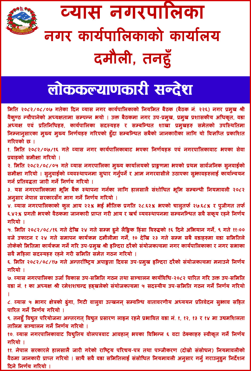 दमौली, १७ मंसिर । तनहुँको व्यास नगरपालिका–१३ स्थित बेनीकोट गाउँका किसानले यसवर्ष रु दुई करोड…