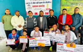 दुलेगाैडा: खेलकुद विकास समिति शुक्लागण्डकी–६ द्धारा आयोजित बि लेभलको ब्याडमिन्टनको उपाधि कमल राना र लक्ष्मण लामाको जोडीले चुमेको छ । आइतबार भएको फाईनल खेलमा राना र लामाको जोडीले देवबहादुर गुरुङ र मनबहादुर आलेको जोडीलाई २२–२१, २०–१४ को सोझो सेटमा पराजित गर्दै उपाधि रक्षा गरेको हो । राना र लामा जोडीले उपाधिसँगै नगद २१ हजार १ सय ११ रुपैयाँ ट्रफी, मेडल र प्रमाणपत्र पाएको छ । उपविजेता गुरुङ र आले जोडीले १२ हजार २ सय २२ रुपैयाँमा चित्त बुझाए ।