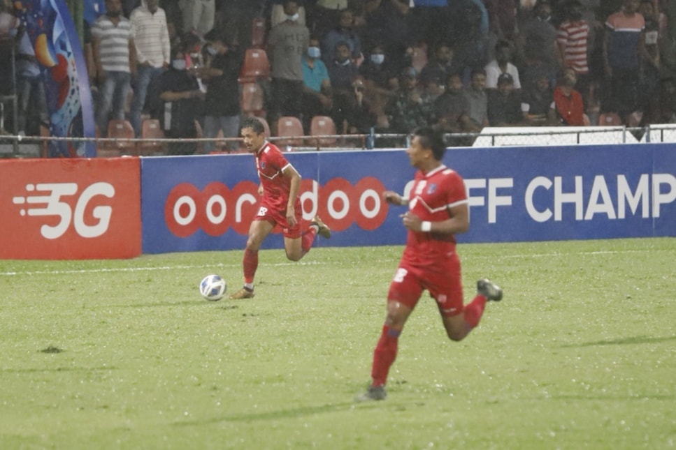 काठमाडाै : नेपाल र भारतबीच साफ च्याम्पियनसिपको फाइनल खेल यतिबेला जारी रहेको छ । माल्दिभ्सको राष्ट्रिय फुटबल रंगशालामा जारी खेलको पहिलो हाफ सकिँदासम्म स्कोर गोलरहित बराबरीमा रहेको छ ।