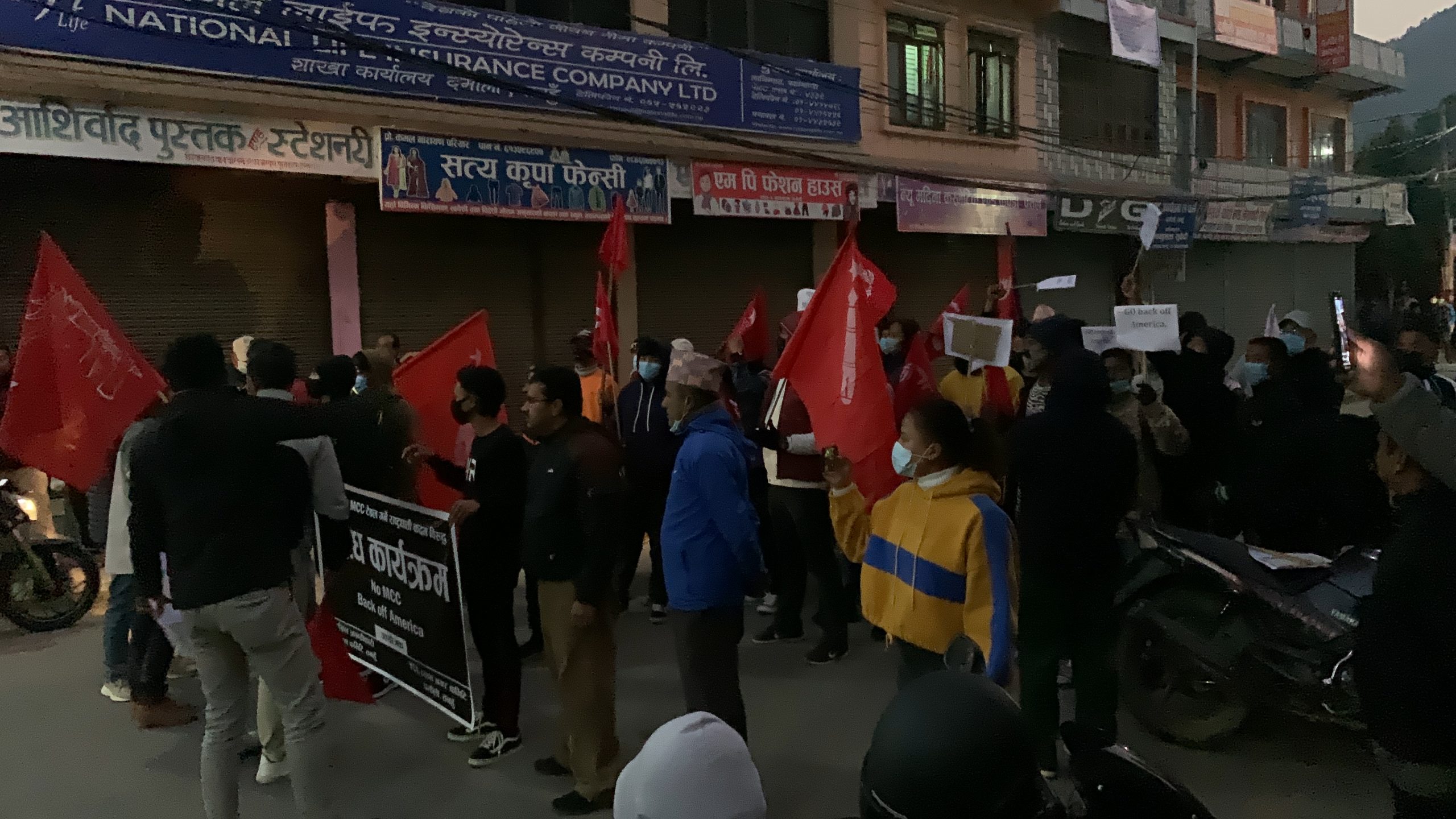 दमाैली । एमसिसीको विरोधमा सत्तारुढ दल नेकपा माओवादी केन्द्र निकट अखिल क्रान्तिकारी र वाइसिएलले दमौलीमा बुधबार साँझ विरोध प्रदर्शन गरेका छन् । एमसिसी राष्ट्रघाती भन्दै माओवादी कार्यकर्ताले विरोध प्रदर्शन गरेका हुन् ।