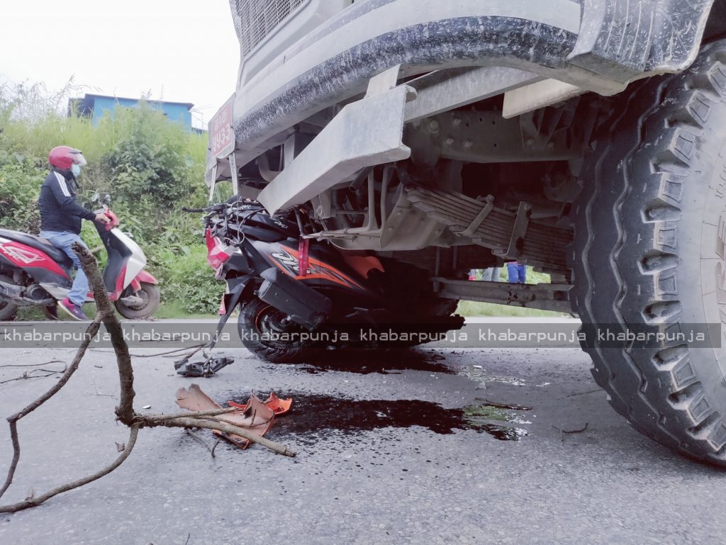 दमाैली । पृथ्वीराजमार्ग अन्तर्गत तनहुँको व्यास नगरपालिका–१२ देउरालीमा शनिबार दुर्घटना भएको छ । ग १ क ५५३३ नम्बरको टिप्पर र ग १५ प १४८४ नम्बरको स्कूटर ठोक्किएको हो । स्कूटर टिप्परको अगाडीको भागमुनि छिरेको छ ।