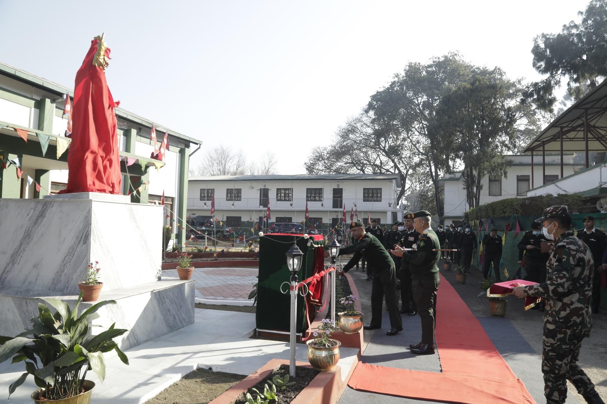 राष्ट्रनिर्माता पृथ्वीनारायण शाहको नवनिर्मित पूर्णकदको उक्त शालिकको विशेष समारोहका बीच प्रधानसेनापति प्रभुराम शर्माले अनावरण गरे । अनावरण समारोहमा नेपाली सेनाका बलाध्यक्ष रथी सीताराम खड्का, रथीवृन्द, अधिकृतलगायत सकल दर्जाहरूको उपस्थिति रहेको सैनिक जनसम्पर्क तथा सूचना निर्देशनालयले जनाएको छ ।