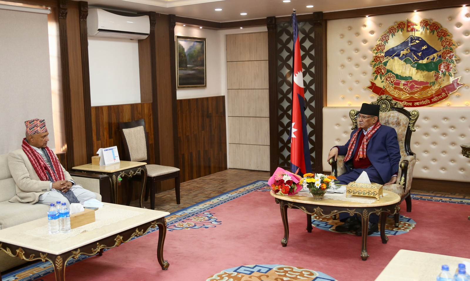 प्रधानमन्त्री प्रचण्ड र गण्डकीका मुख्यमन्त्री अधिकारीबीच भेटवार्ता