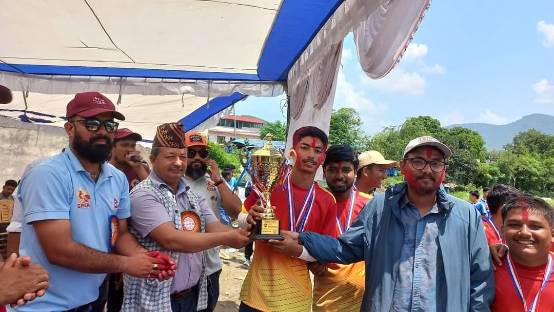 विजयीलाई पुरस्कार वितरण गर्दै म्याग्दे गाउँपालिकाका अध्यक्ष श्रीप्रसाद श्रेष्ठले क्रिकेट खेलले नेपालको नाम विश्वमाझ चिनाउन सफल भएकाले स्थानीय स्तरदेखि नै क्रिकेटमा लगानी बढाउनुपर्ने अवस्था आएको बताए ।