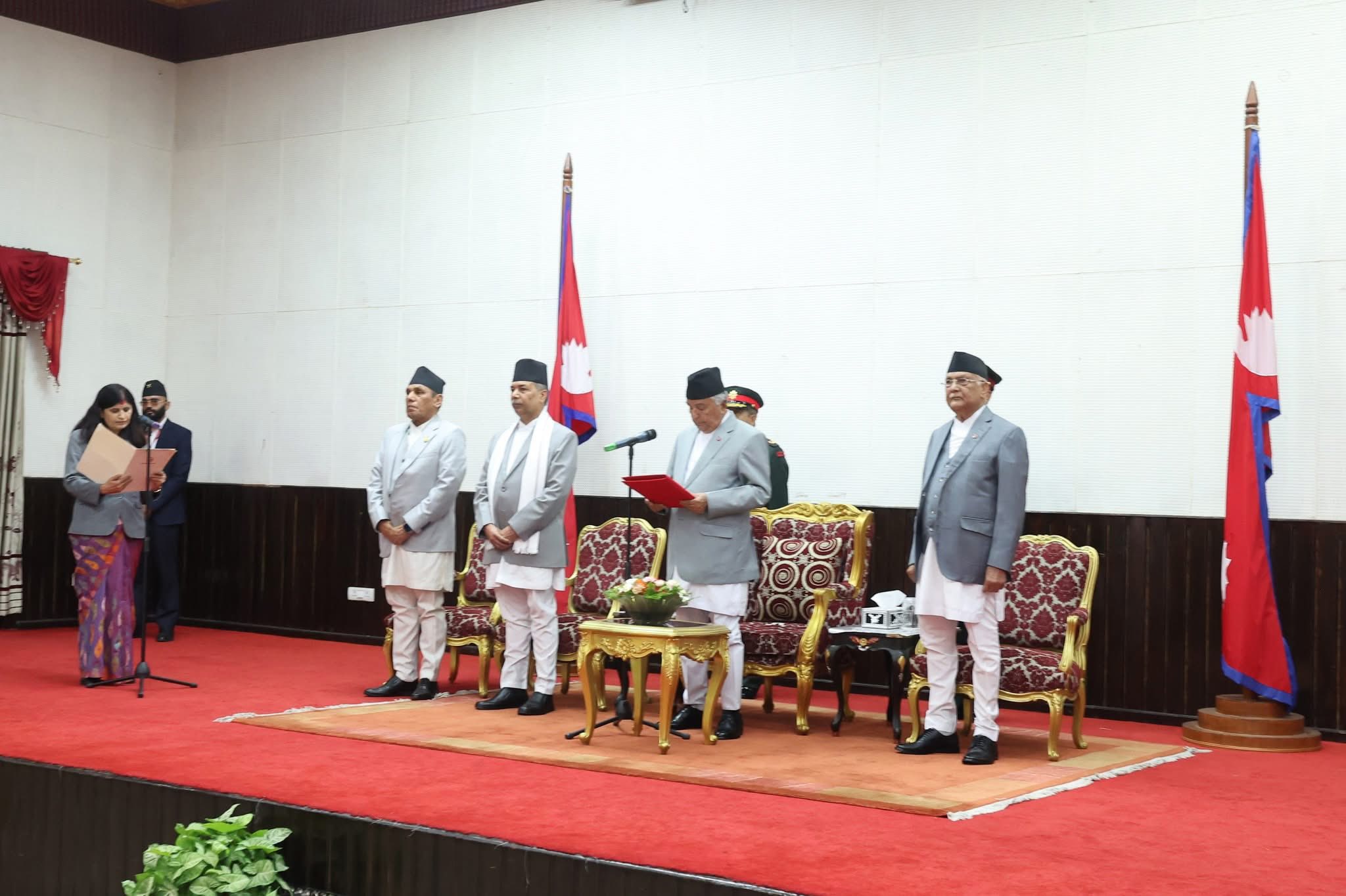 काठमाडौँ, ३२ असार । राष्ट्रपति रामचन्द्र पौडेलसमक्ष नवनियुक्त सङ्घीय मामिला तथा सामान्य प्रशासनमन्त्री भगवती न्यौपानेले पद तथा गोपनियताको शपथ लिएकी छन् । राष्ट्रपति भवन शीतल निवासमा आज आयोजित विशेष समारोहमा राष्ट्रपति पौडेलले उनलाई शपथ दिलाएका हुन् ।