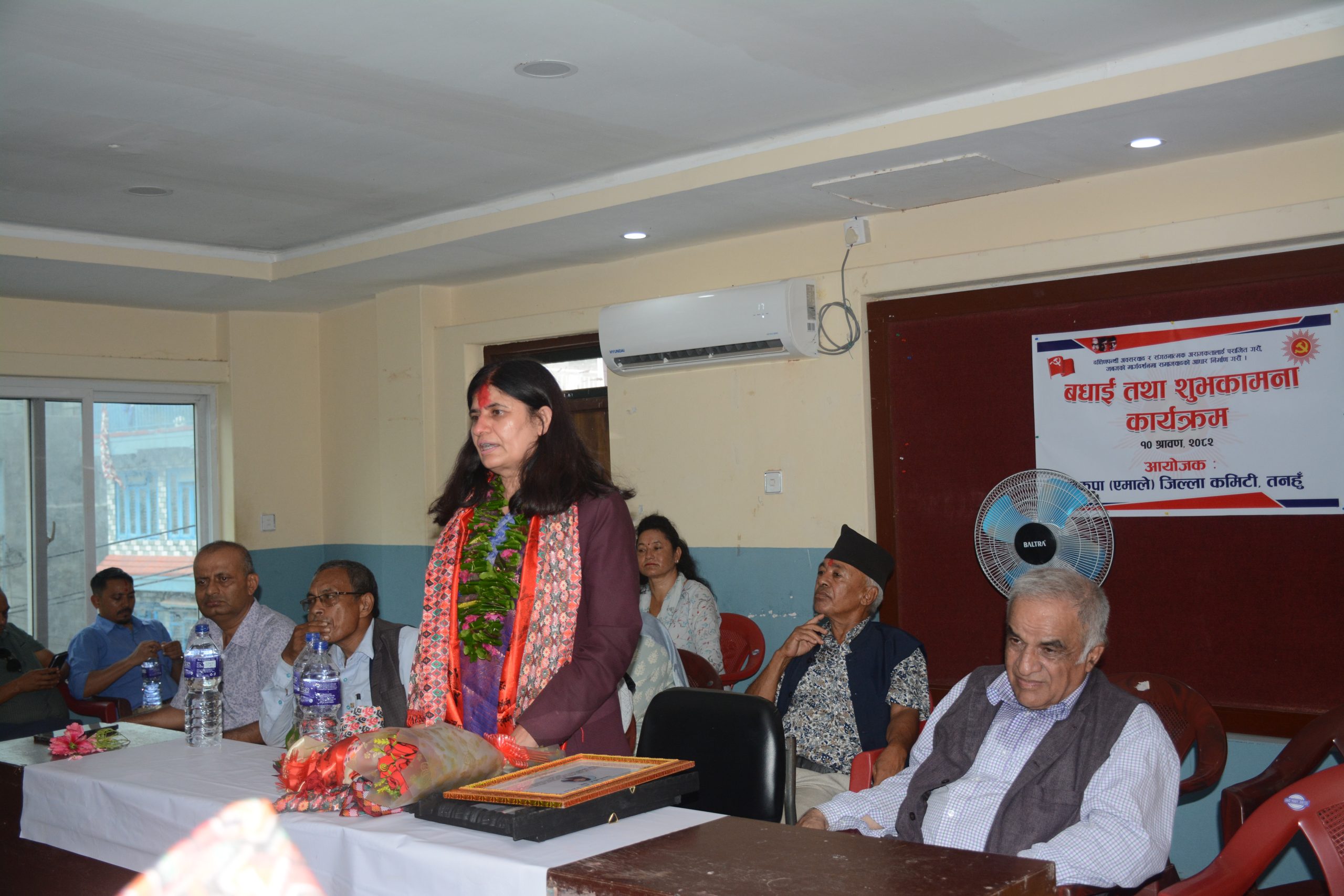 नेकपा एमाले तनहुँका अध्यक्ष हरिराज कडेलकाे अध्यक्षतामा भएकाे कार्यक्रममा एमाले नेताहरु पिएल श्रेष्ठ, नरेन्द्रराज वाग्ले, मनुमाया श्रेष्ठ, प्रदीपराज अधिकारी लगायतले मन्त्री न्याैपानेलाई शुभकामना दिएका थिए ।