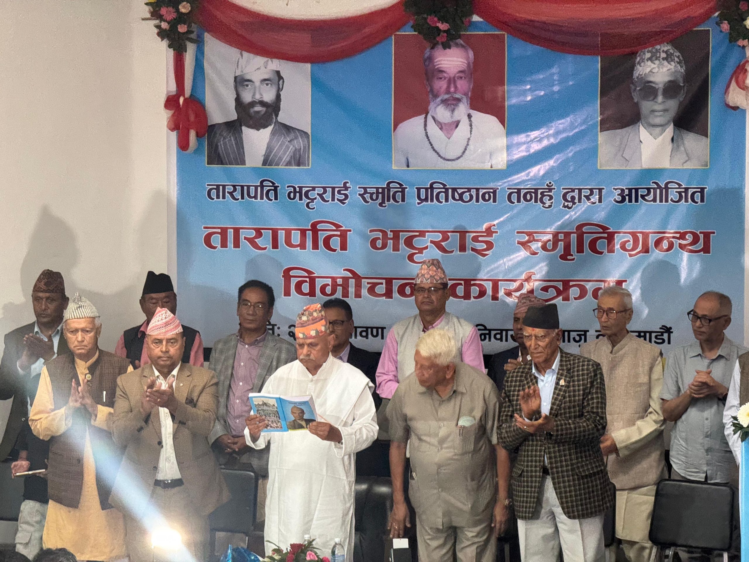 काठमाडौँ, १७ साउन । पूर्वराष्ट्रपति डा रामवरण यादवले ‘तारापति स्मृतिग्रन्थ’ को विमोचन गरेका छन् । तारापति भट्टराई स्मृति प्रतिष्ठान तनहुँद्वारा शनिबार यहाँ आयोजित पुस्तक विमोचन कार्यक्रममा उनले यस्ता कृति इतिहास बुझ्न चाहनेका लागि दस्ताबेजका रूपमा उपयोगी हुने धारणा राखे ।