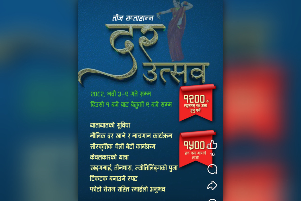 यस अवधिमा दर खाने उत्सव भाद्र ३ देखि १० गतेसम्म र खुला तीज गीत प्रतियोगिता भाद्र ६ देखि १० गतेसम्म सञ्चालन हुनेछ। समितिका संयोजक लक्ष्मी प्रसाद सापकोटाका अनुसार कार्यक्रम स्थल बन्दीपुर केवलकार एण्ड टुरिजम लिमिटेडको बटम स्टेसन रहनेछ। कार्यक्रम प्रत्येक दिन दिउँसो १ बजे सुरु भई साँझ ९ बजे सम्म सञ्चालन हुनेछ। यस वर्षको खुला तीज गीत प्रतियोगितामा ५१ टिमको सहभागिता रहनेछ। प्रतियोगितामा प्रवेश शुल्क प्रतिटिम रु २५०० तोकिएको छ।