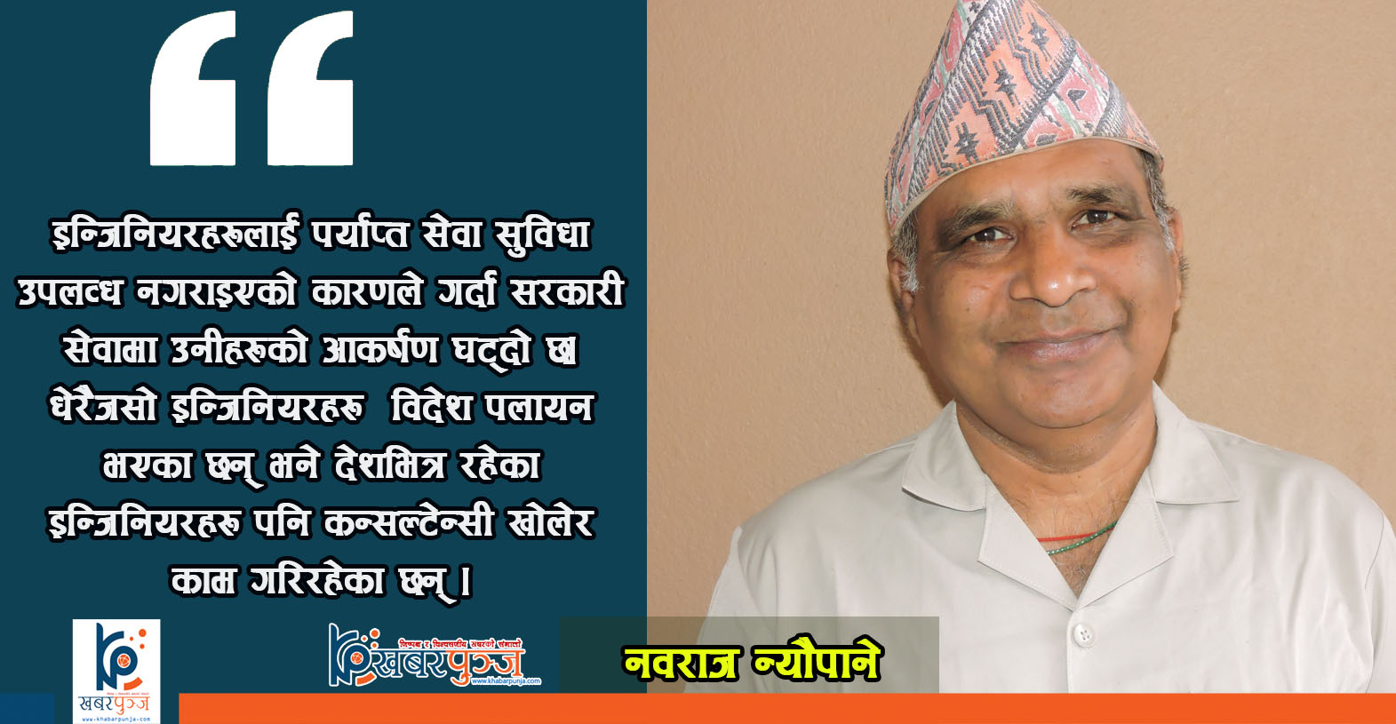 अन्त्यमा, इन्जिनियरहरूलाई पर्याप्त सेवा सुविधा उपलब्ध नगराइएको कारणले गर्दा सरकारी सेवामा उनीहरूको आकर्षण घट्दो छ। धेरैजसो इन्जिनियरहरू विदेश पलायन भएका छन् भने देशभित्र रहेका इन्जिनियरहरू पनि कन्सल्टेन्सी खोलेर काम गरिरहेका छन्। वार्षिक समयतालिका बनाएर बाह्रै महिना अफिस तथा फिल्डमा खटिनुपर्ने इन्जिनियरहरूलाई पर्याप्त सुविधा नदिदा योजना ,आयोजनाहरूमा भ्रष्ट्राचारको गन्ध मिसिन सक्छ भन्ने कुरा सबैले बुझ्नु जरूरी हुन आउँछ।