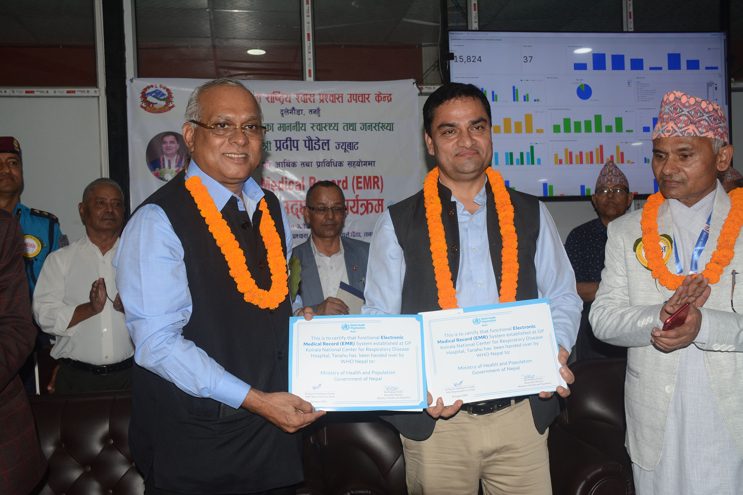 दमाैली, १० भदाै । स्वास्थ्य तथा जनसङ्ख्या मन्त्री प्रदीप पौडेलले तनहुँको शुक्लागण्डकी नगरपालिका–५ बेलचौतारास्थित जिपी कोइराला श्वासप्रश्वास उपचार केन्द्रमा इलेक्ट्राेनिक मेडिकल रेकर्ड प्रणालीकाे शुभारम्भ गरेका छन् । अस्पतालमा मङ्गलबार आयोजित विशेष कार्यक्रमका बीच मन्त्री पौडेलले उक्त प्रणालीको शुभारम्भ गरेका हुन् ।