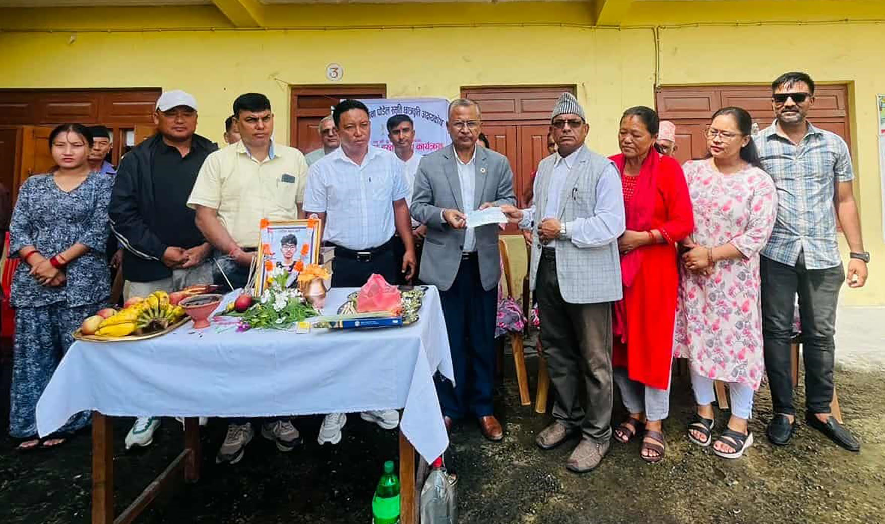 पराशर माध्यमिक विद्यालयमा आयोजित एक कार्यक्रमका स्वर्गीय पौडेलका हजुरबुबा हेम पौडेल, हजुरआमा उषा क्षेत्री, बुबा इन्द्र राना, आमा विद्या पौडेलले व्यास नगरपालिकाका प्रमुख वैकुण्ठ न्यौपानेमार्फत् पराशर माध्यमिक विद्यालयका प्रधानाध्यापक रामदत्त पौडेल र ज्येष्ठ नागरिक आश्रमका अध्यक्ष सत्यप्रसाद खनाललाई उक्त रकमको चेक हस्तान्तरण गरेका छन् ।