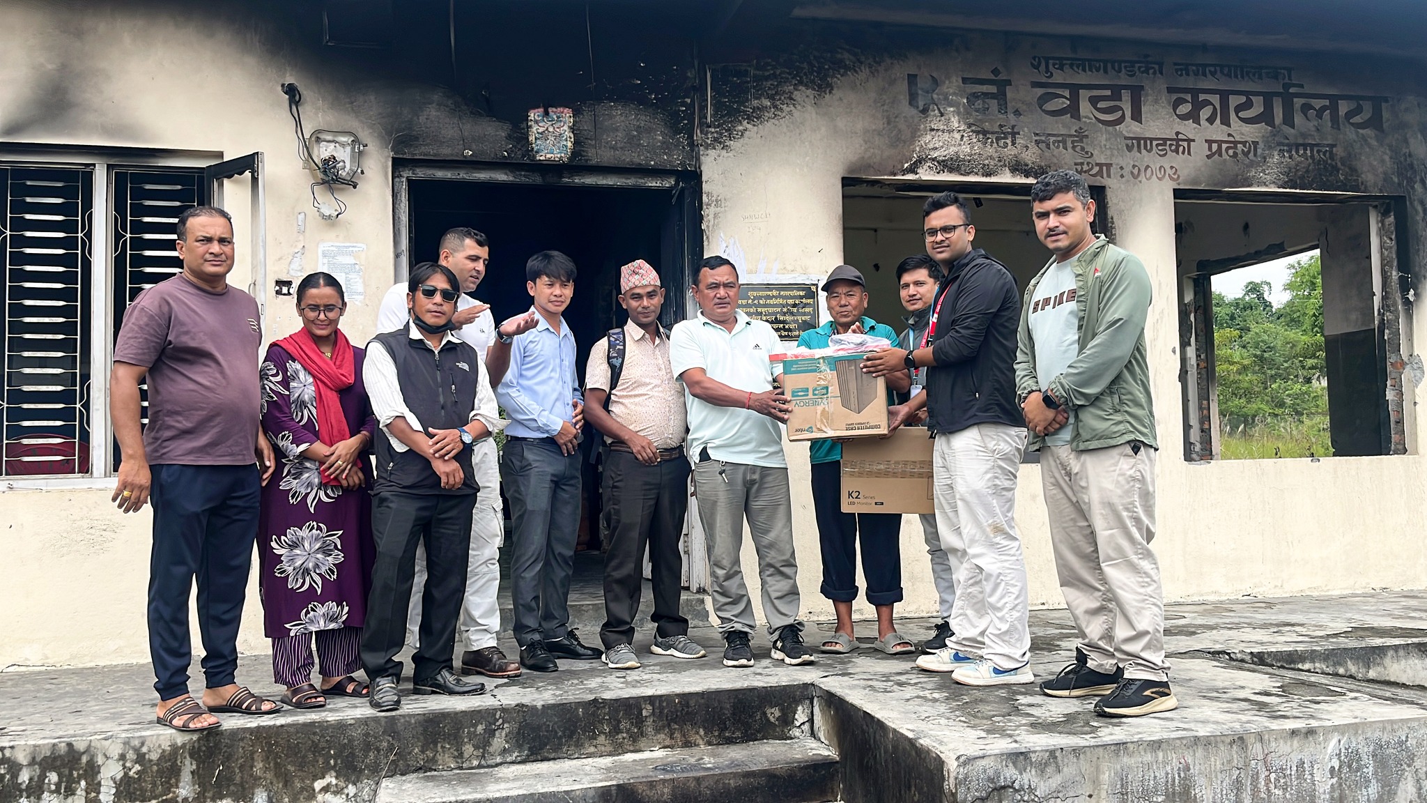 दमाैली, २९ भदाै । शुक्लागण्डकी नगरपालिका-९ को कार्यालयलाई डिजी लिंक नेटवर्क प्रालिले कम्प्युटर सेट सहयोग गरेको छ । जेन–जी प्रदर्शनकारीले तोडफोड र आगजनी गरेर ध्वस्त बनाइदिएको वडा कार्यालयलाई सेवा सुचारु गर्नका लागि डिजी लिंकले कम्प्युटर सेट सहयोग गरेको हो ।