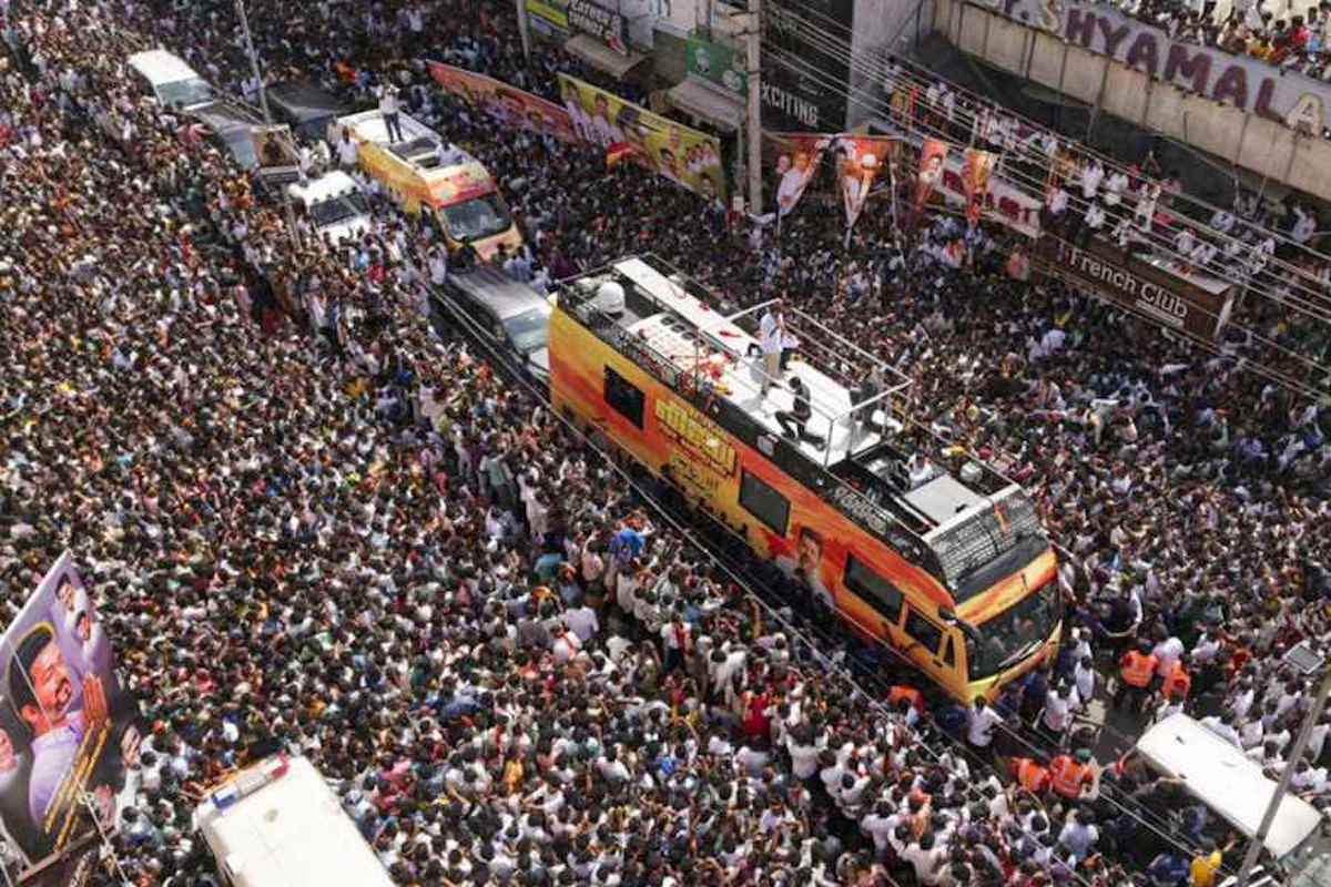 राजनीतिमा प्रवेश गरेका विजय थलापति नेतृत्वको तामिलगा वेत्री काझगम (टिभिके) पार्टीले शनिबार तमिलनाडुको करूर जिल्लामा आयोजना गरेको सभामा यो घटना भएको हो।
