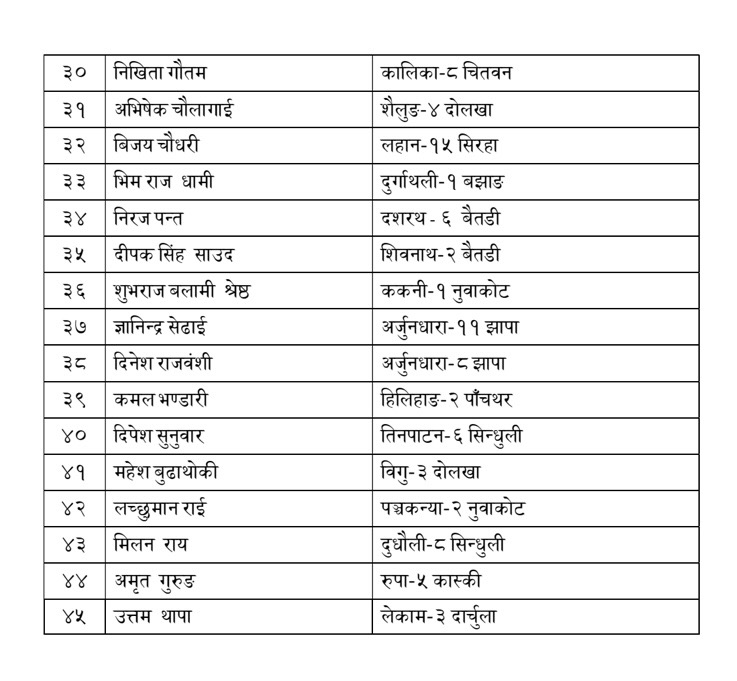 गृह मन्त्रालय स्रोतले शहीद घोषणा भएका व्यक्तिहरूको नामावली सार्वजनिक गरेको छ ।