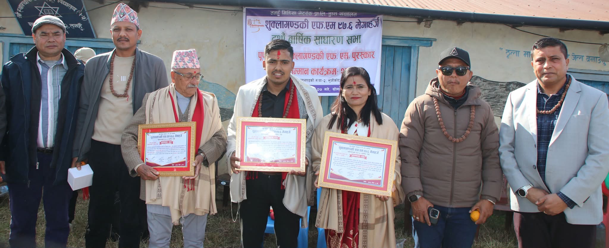 तनहुँ जिल्लामा साहित्यिक क्षेत्रमा क्रियाशिल रहेका मध्य एक, खोज पत्रकारिता क्षेत्रमा लागेका व्यक्ति र शुक्लागण्डकी नगर क्षेत्रमा सामाजिक क्षेत्रमा सक्रिय व्यक्तिबाट छनौट गरि सम्मान गरिएको हो ।