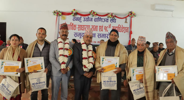 दमाैली, २८ पुस । तनहुँ उद्योग वाणिज्य संघले आफ्नो ४०औँ वार्षिक साधारण सभा तथा १८औँ महाधिवेशनको अवसरमा जिल्लाभित्र कृषि र उद्योग क्षेत्रमा उल्लेखनीय योगदान पुर्याएका कृषक तथा उद्योगीलाई नगद पुरस्कारसहित सम्मान गरेको छ।