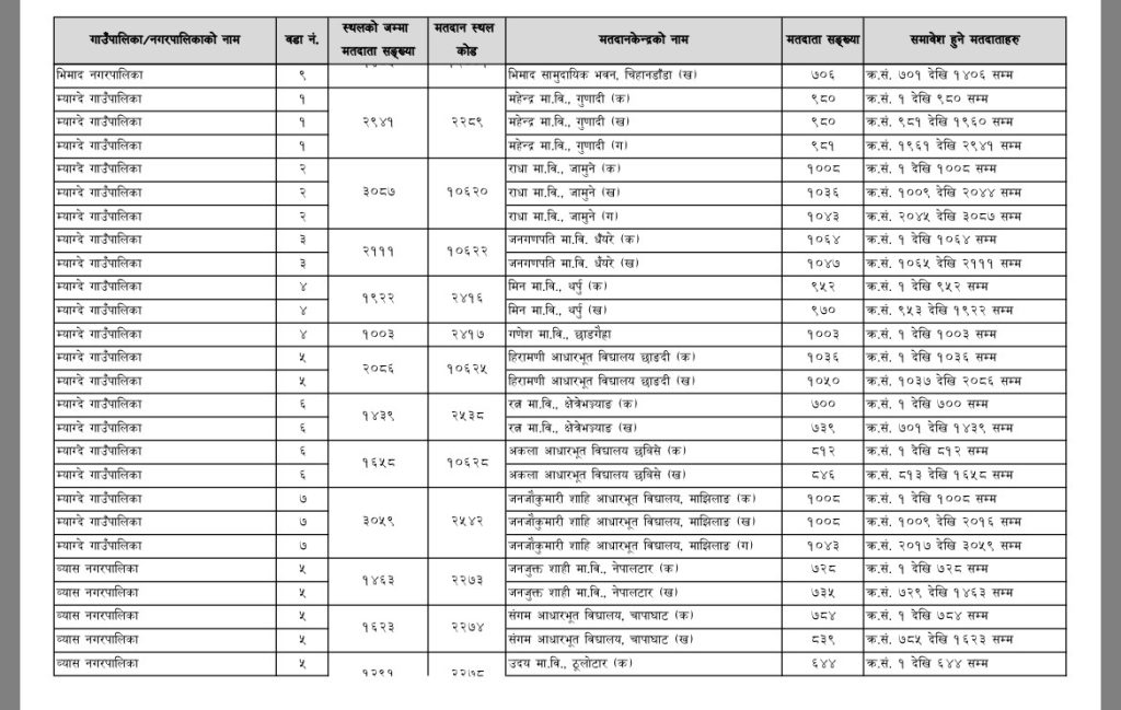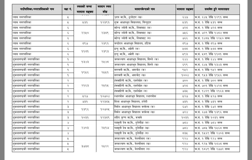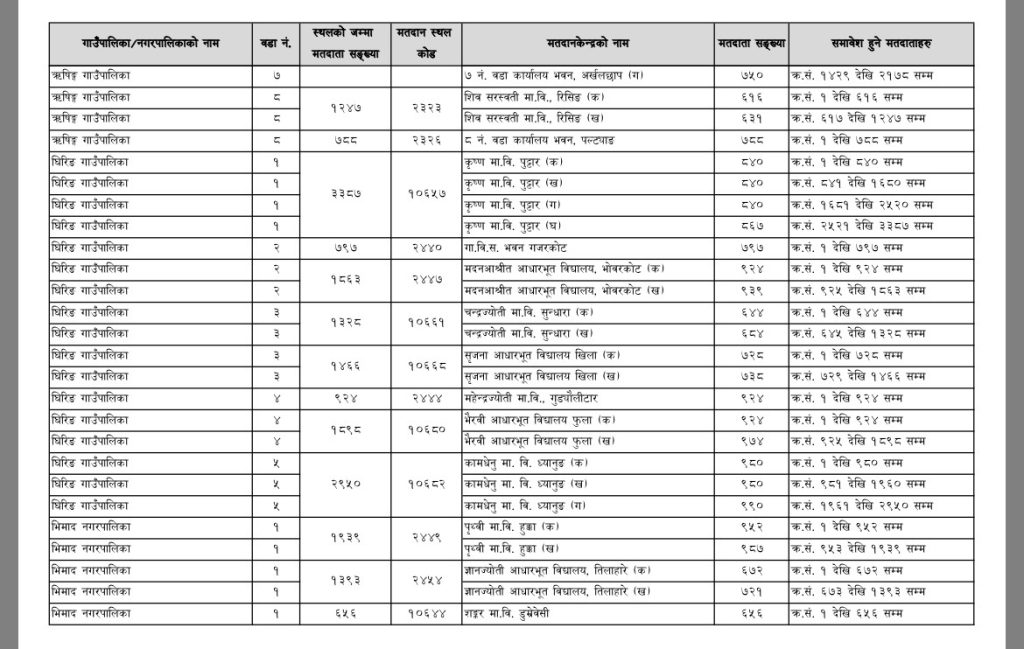 यस क्षेत्रमा १५६ मतदान केन्द्र रहेको छ ।