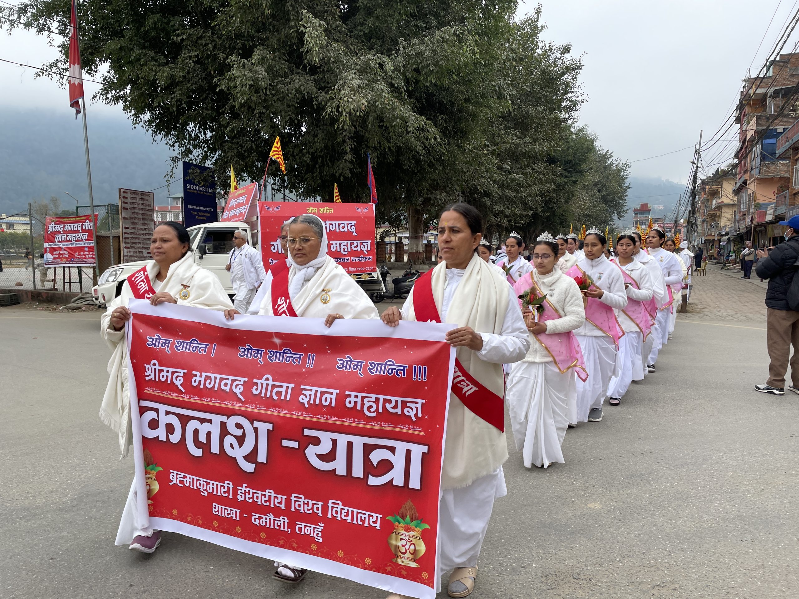 दमौली, २२ माघ । ब्रह्माकुमारी ईश्वरीय विश्व विद्यालय एवं राजयोग प्रशिक्षण केन्द्र, दमौली शाखाको आयोजनामा पाँच दिवसीय ‘श्रीमद्भगवद्गीता ज्ञान महायज्ञ’ बिहीबारदेखि सुरु भएको छ। व्यास नगरपालिका–३ स्थित दमौली सभागृहमा सञ्चालित महायज्ञको पहिलो दिन नगरमा उल्लासमय कलश शोभा यात्रा निकालिएको थियो।