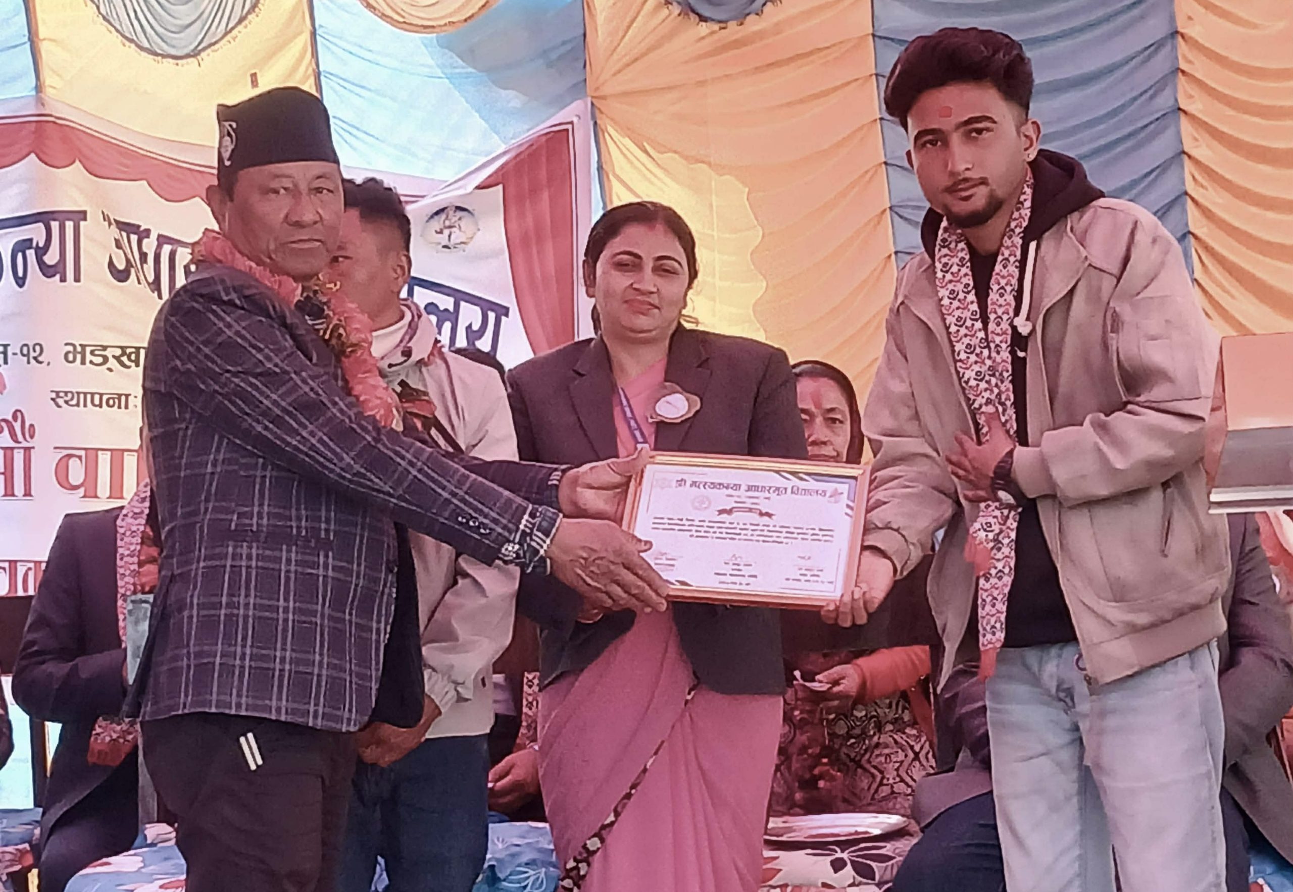 विद्यालयले उनको निरन्तर सामाजिक पहल, जिम्मेवार नेतृत्व र सकारात्मक सोचको कदरस्वरूप प्रशंसापत्रबाट सम्मान गरेको हो।