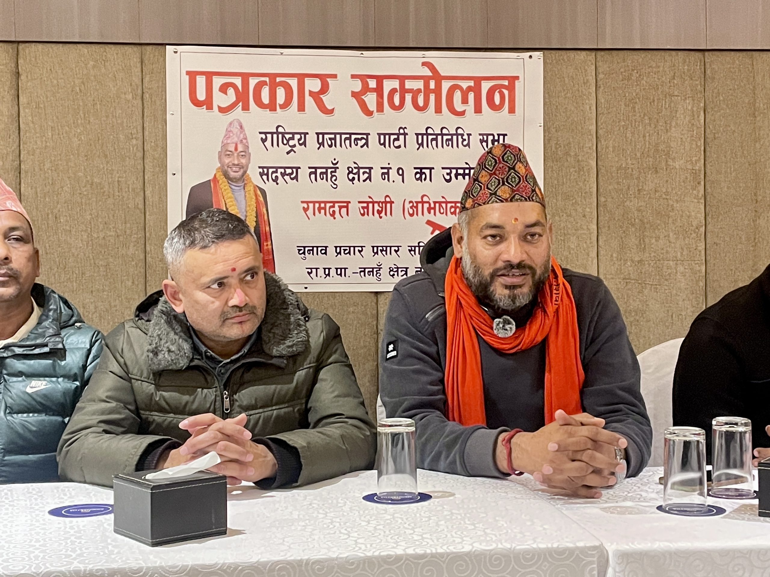 दमौली, २६ माघ । तनहुँ–१ बाट राष्ट्रिय प्रजातन्त्र पार्टी (राप्रपा) का उम्मेदवार रामदत्त जोशी (अभिषेक) ले आफ्नो प्रतिष्पर्धी अरु उम्मेदवार नभई जनता रहेको बताएका छन् । उनले तनहुँ-१ का उम्मेदवार सबै गणतन्त्रवादी रहेको र आफूमात्रै राजसंस्थावादी र हिन्दुराष्ट्रवादी रहेको उल्लेख गरे ।