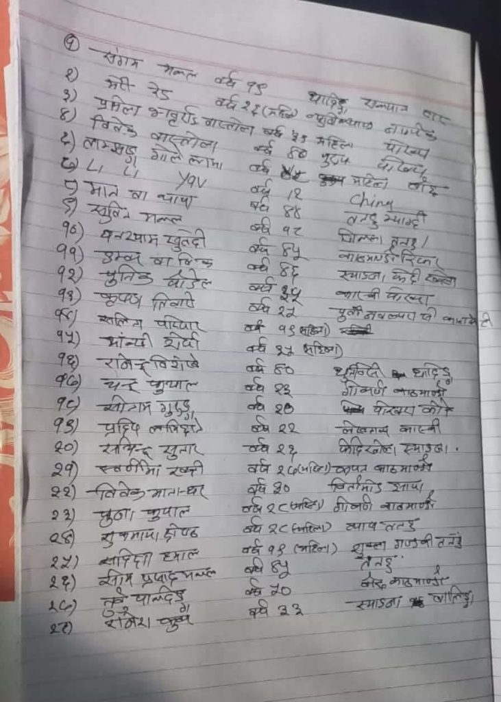 बसमा मुग्लिनबाट २ जना वा ३ जना चढेकोबारे यकिन नभएको प्रहरीले बताएको छ । बसमा सवारको प्रारम्भिक विवरण आए पनि घाइते र मृतकको पहिचान हुन सकेको छैन ।
