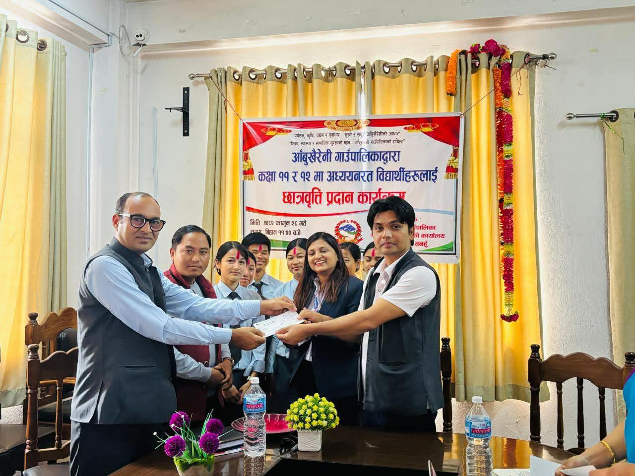 आँबुखैरेनी गाउँपालिकाद्वारा रु सात लाख ५० हजार छात्रवृत्ति वितरण