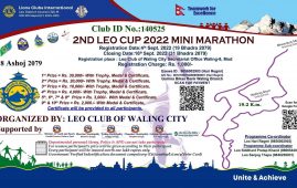 स्याङ्जा । स्याङ्जाको वालिङमा असोजको दोस्रो साता‘लियो मिनी म्याराथन’हुने भएको छ। लियो क्लब अफ वालिङ सिटीको आयोजनामा असोज ८ गते वालिङमा म्याराथन प्रतियोगिता हुने पत्रकार…