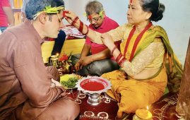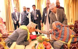 काठमाडौँ । रामचन्द्र पौडेलले ९१ वर्षीया भाउजू विष्णुमाया पौडेलबाट दसैँको टीका, जमरा, प्रसाद र आशिर्वाद ग्रहण गरेका छन् । साथै गुरु पुरोहितबाट पनि दसैँको दीका,…