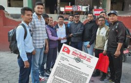 काठमाडाैं, ३१ असाेज । नेपाल विद्यार्थी संघ केन्द्रीय कार्यसमितिका सदस्यहरूले नेपाली कांग्रेस केन्द्रीय कार्यसमितिसमक्ष ६ बुँदे माग राखेका छन् । बिहीबार सानेपास्थित पार्टी कार्यालयमा नेपाल…