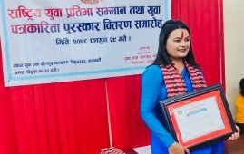 दमौली । सञ्चारिका समूह नेपालकी केन्द्रीय सदस्य बसन्ती बास्तोला युवा पत्रकारिता पुरस्कारबाट पुरस्कृत भएकी छन् । युवा तथा खेलकुद मन्त्रालयले बास्तोलालाई युवा पत्रकारिता पुरस्कारबाट पुरस्कृत…