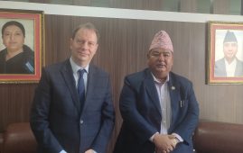 काठमाडाै । श्रम, रोजगार तथा सामाजिक सुरक्षामन्त्री कृष्णकुमार श्रेष्ठसँग नेपालका लागि फ्रान्सका राजदूत गिल्स बुर्बाओले शिष्टाचार भेट गरेका छन् । मन्त्रालयमा मङ्गलबार भएको भेटवार्तामा उहाँहरूबीच…
