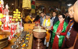 काठमाडौँ, २९ वैशाख । राष्ट्रपति रामचन्द्र पौडेल प्रथम महिला सबिता पौडेलसहित बौद्ध तथा मेलम्ची घ्याङ गुठी द्वारा २५६९ औं बुद्ध जयन्तीका अवसरमा सोमबार बिहान बौँद्ध…